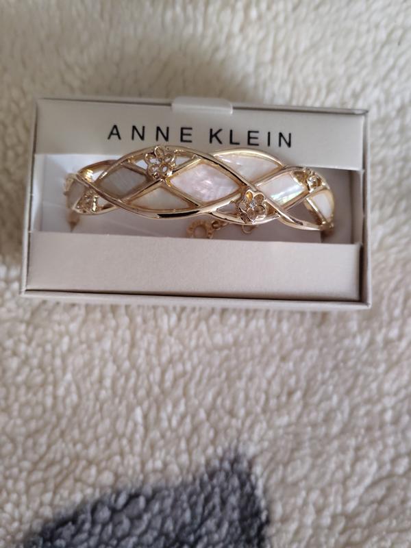 Gold-Tone Pavé Flower Mother-of-Pearl Inlay Cuff Bracelet