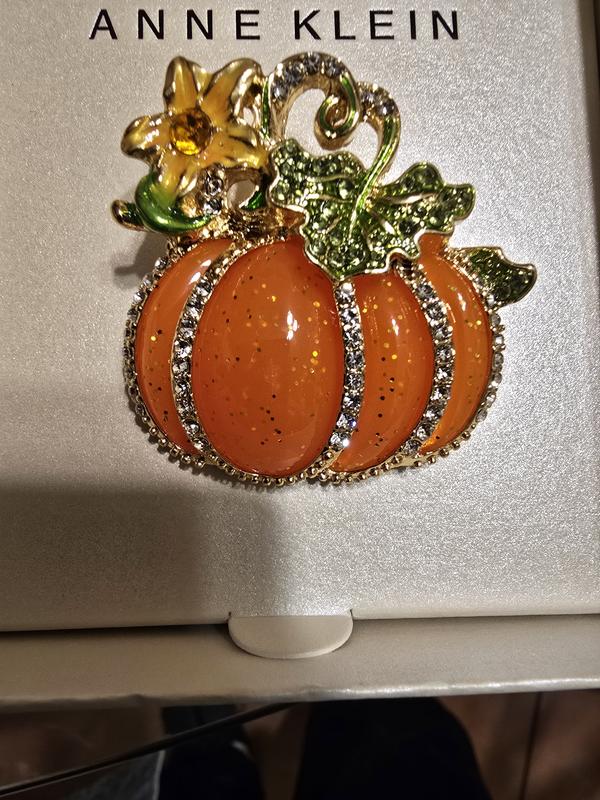 Beautiful pumpkin brooch but it was broken. Im very disappointed. I have many of her brooches. I have one for every holiday and season. I called customer service and returned back to Garden State Plaza yesterday. Showed the brooch to associate who helped me.