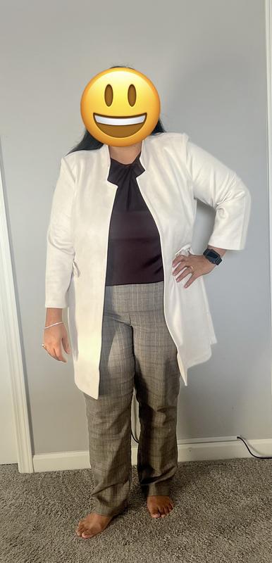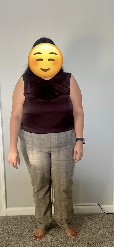 Elegant top that hugs you in the right places and accentuates your curves, the color is also very unique like a dark brown. I paired it with a slightly textured glen plaid pants and a beige suede blazer/overcoat to go on the blouse. Got tons of compliments and I would rate it a 5/5.