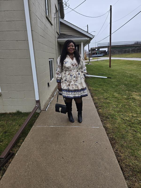 Anne KleinPlus Size Printed Satin Twill Fit & Flare Dress