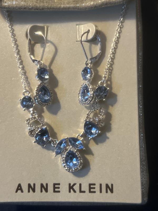 Silver-Tone Pavé & Color Stone Statement Necklace & Drop Earrings Set