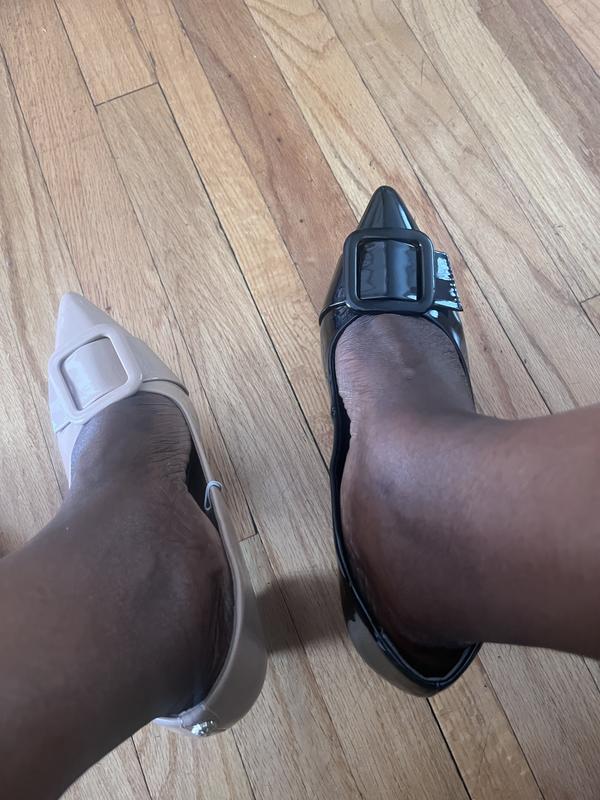 Anne Klein Bentley is a very nice shoe. I followed a recommendation to go up a half size. It provides more toe space. I have a narrow foot and the right shoe was too big. It felt like a person with a large foot had stretched the shoe or it was used for display. The left shoe fit fine. I ordered the suede and patent. The suede shoes had never been tried on and they fit fine.