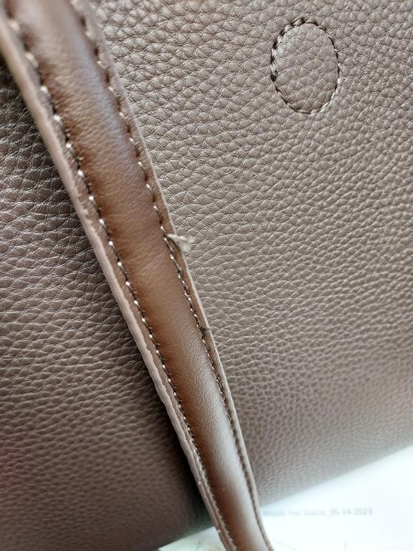 It is a bit smaller than I expected but that's on me. I am disappointed in that I have already seen threads in the handle fraying after 2 weeks use. This is not what I expected from this brand + the cost of the bag. I'm a fan of Anne Klein clothing but this bag has me bummed