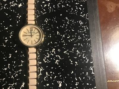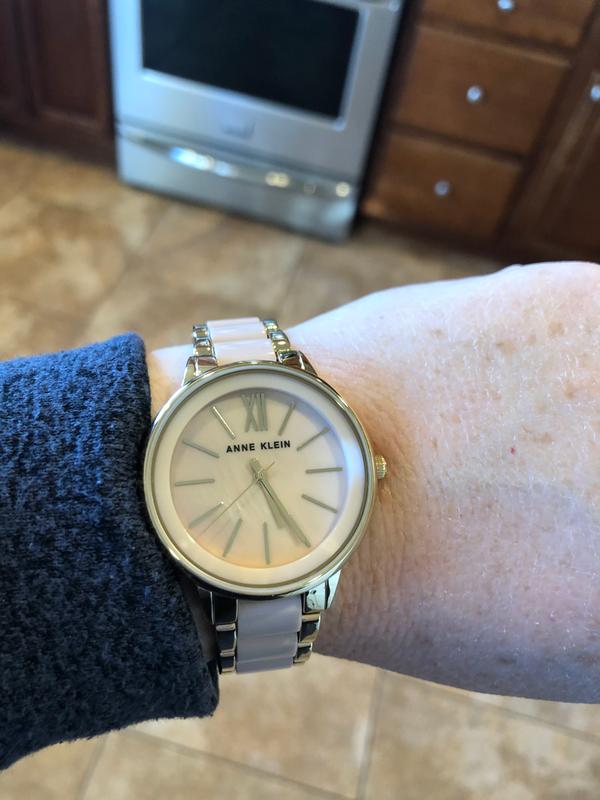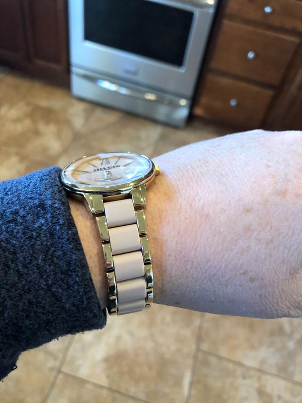 Very pretty and smart watch! Nicer than photos, looks classy on the arm. The color appears as a neutral and will go with about anything and looks nice with my skin tone. A lot of bang for the bucks! Love it!