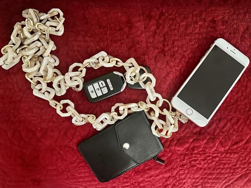 I received this crossbody chain from Anne Klein and I love it. It’s so rest to attach to your phone and it fits perfectly across my body. I always have issues with holding my phone while walking around. This helps me be hands free and still be able to use it when needed. I also don’t drop or lose my phone when I have this. The vision is very durable and fashionable. I would recommended this product.