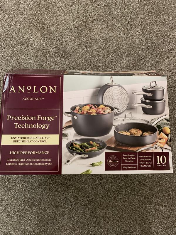 Accolade Forged Hard-Anodized Nonstick Cookware Set, 10-Piece, Moonstone