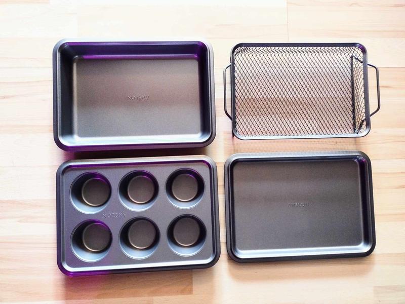 This bakeware set has everything you would need and fits in my toaster over perfectly. The nonstick surface makes cleaning a breeze. I love that I can make quick and easy meals without heating the whole house.