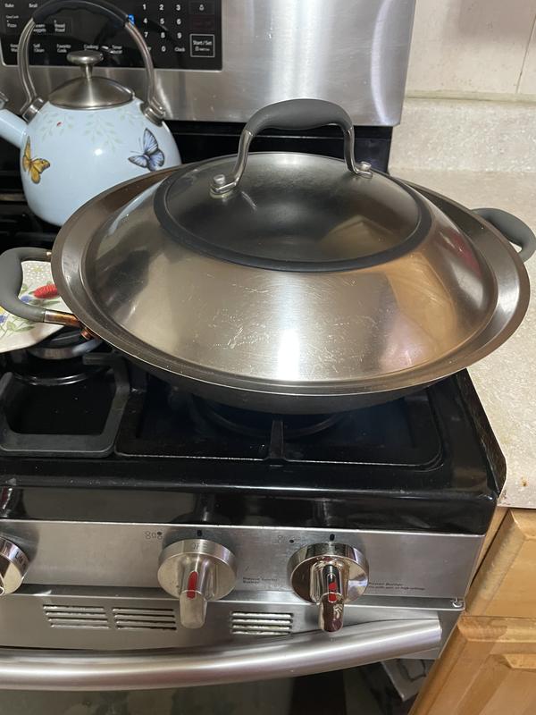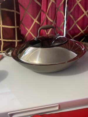 my best wok for stir fry dishes. even heat, non-stick. i like the cover with some room for steaming