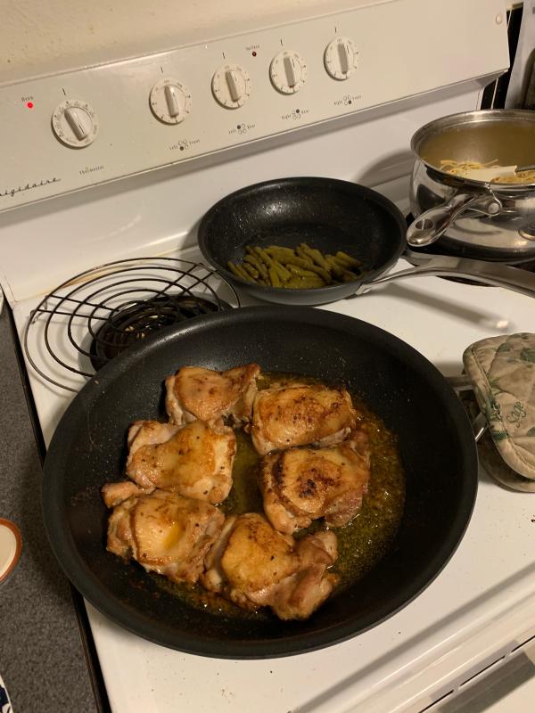 I love my pans. My food cooks evenly and food doesn't stick, and they clean up nicely. I don't know how I have cooked without them. I plan to get more here in the future. Thank you Anolon.