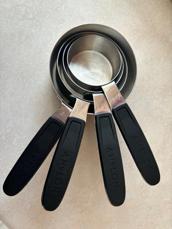 The best measuring cups that I have seen or had. I absolutely love the fact that the handles are magnetic. No more plastic ones that are attached with a plastic ring. They are heavy duty pro type cups. I even bought the other rectangular ones that fit into seasoning bottles. Great buy, great price!!!