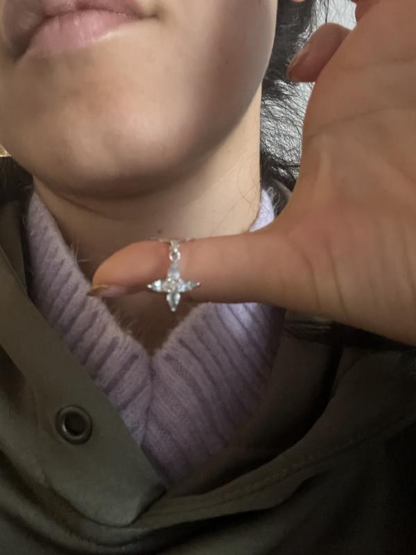 Bought this on sale, and I'm so glad i did. It's exactly the size I wanted to wear daily without having to remove it. Although described as a flower, i see it as a cross. I did put it on my own chain since I like it a bit shorter in length. LOVE IT!