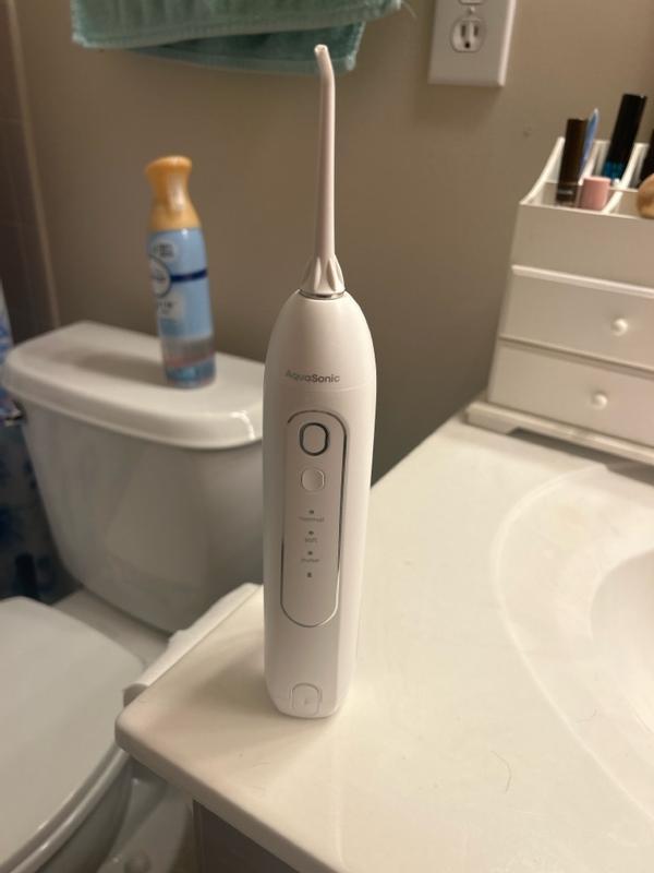 I bought the Aqua sonic water flosser for work and Travel. Compared to other aquasonic water floss that I had in the past the pressure from this water floss isn’t strong when ejected water and the water from the tank finished quickly. I love the fact that it is a good size for traveling. It does not come with Pouch/bag which I think they should have had one for it. Overall its a perfect choice, especially if you have braces.