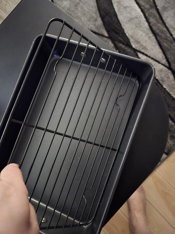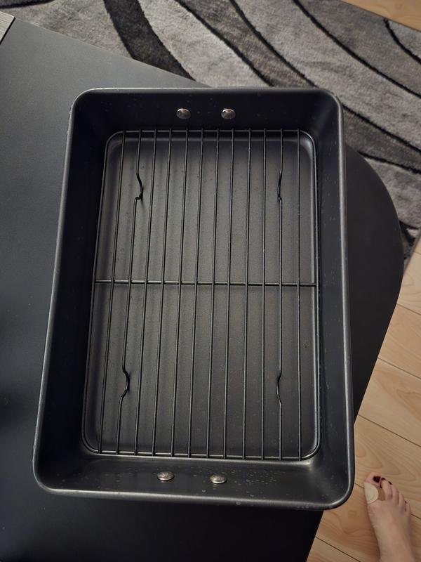 Great for roasting chicken pieces and other meats. The rack is great when you don’t want food to cook in its juices.