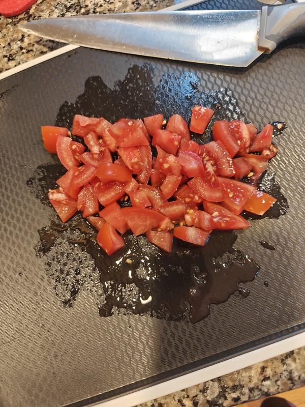 I love the way it's slanted to help with scrapping the veggies to the pan.