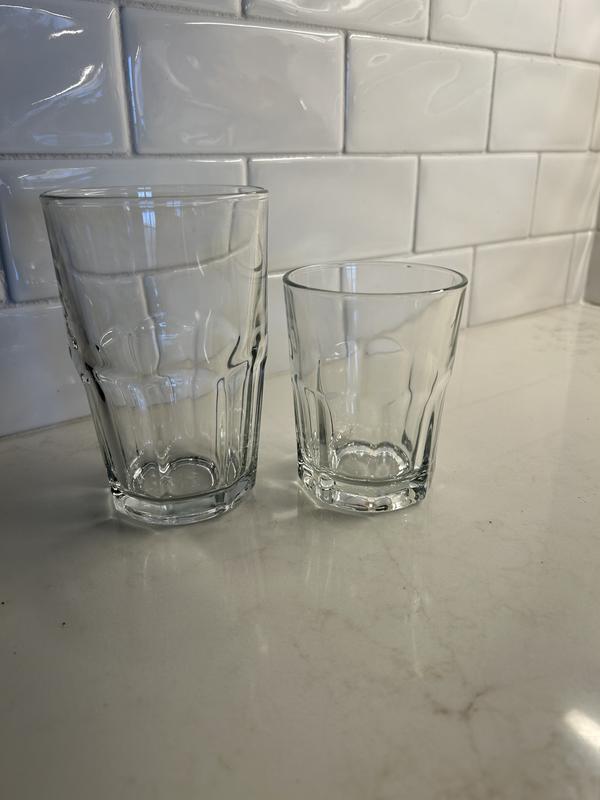 This glassware is very sturdy and pretty. They have clean lines and feel nice in your hand. I’ve washed them in the dishwasher a few times and they came out clear and shiny. I do wish they came in a slightly taller size but overall I would recommend. Very nice every day glasses for the price.