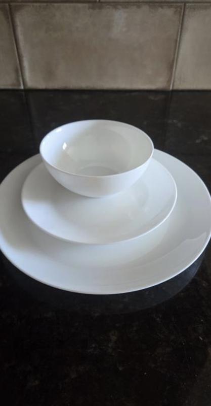I absolutely love these dinner plates! The blue-rimmed opal glass design is simple, elegant, and looks gorgeous on the table-perfect for both everyday meals and when guests come over. They're lightweight but still feel sturdy, and the smooth, glossy finish makes them look much more expensive than they are.