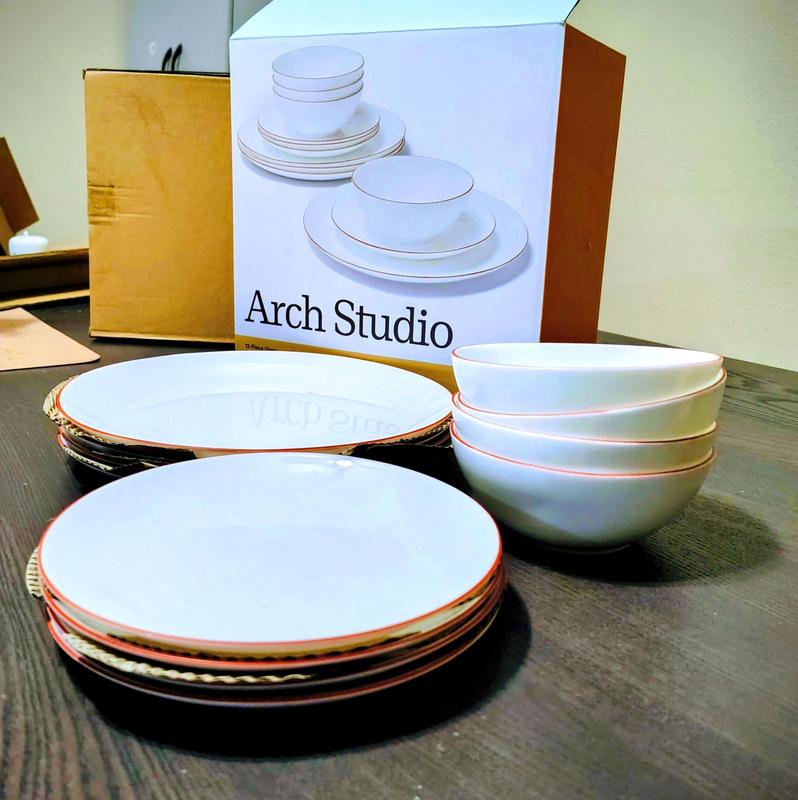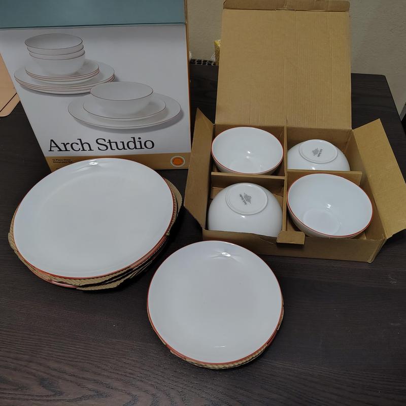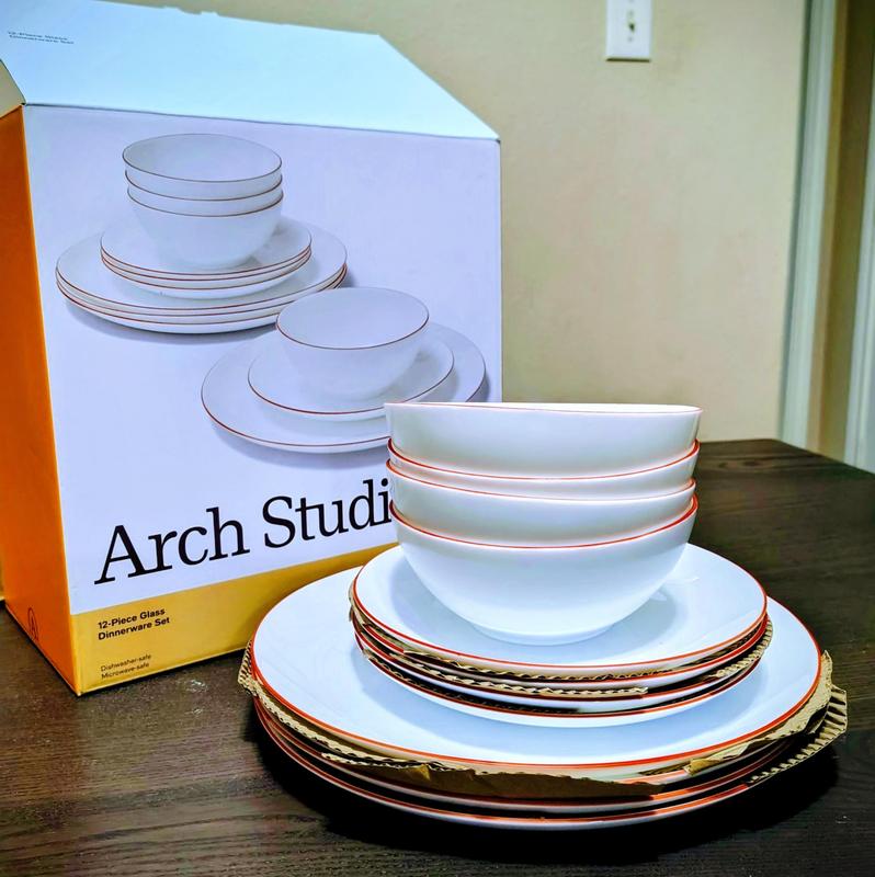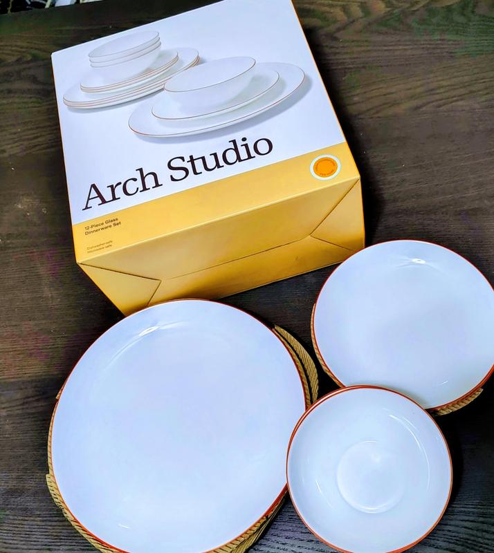 The Arch Studio Opal Glass Rust Rim 12-Piece Set (service for 4) is a fantastic find. With four 10.5-inch dinner plates, 8-inch salad plates, and 18-ounce bowls, this set is stylish, sturdy and brings rustic charm with its warm rust rims. It is lightweight, durable, dishwasher-safe, and microwave-friendly—no chips or fading after heavy use. The coupe design looks modern yet timeless, perfect for casual dinners or small gatherings. My only complain is that the bowls are a bit shallow for soup. Overall, I recommend this beautiful set.
