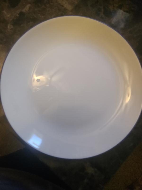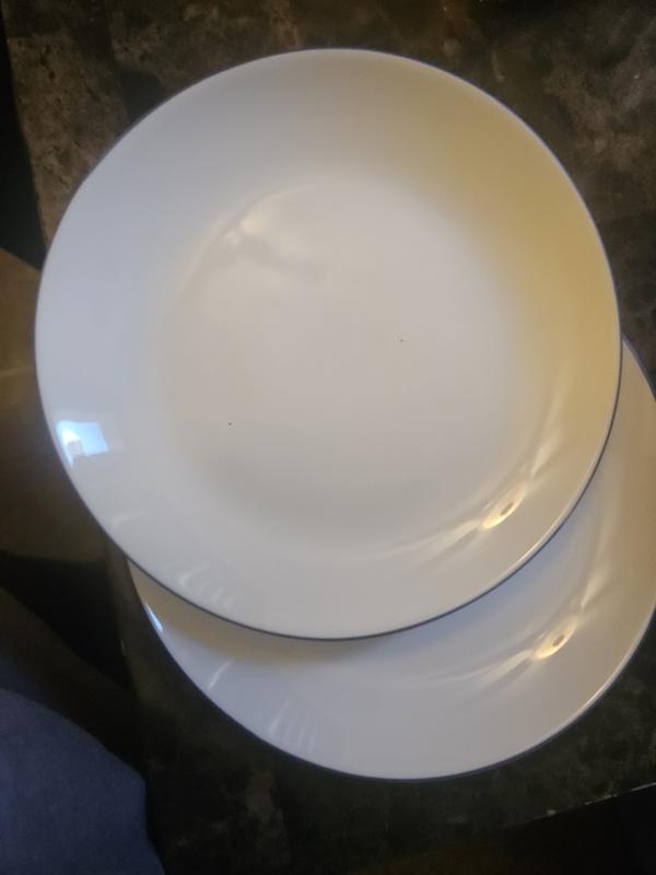 This 12pc dinner set is a nice starter set for someone just starting out with their first place. They came packed very well and none of my pieces were broken. It’s light weight and a little on the thin side but this is a very nice dish set. I love the blue lining around the tops of the plates and the bowls it gives it a nice pop of color with the white.