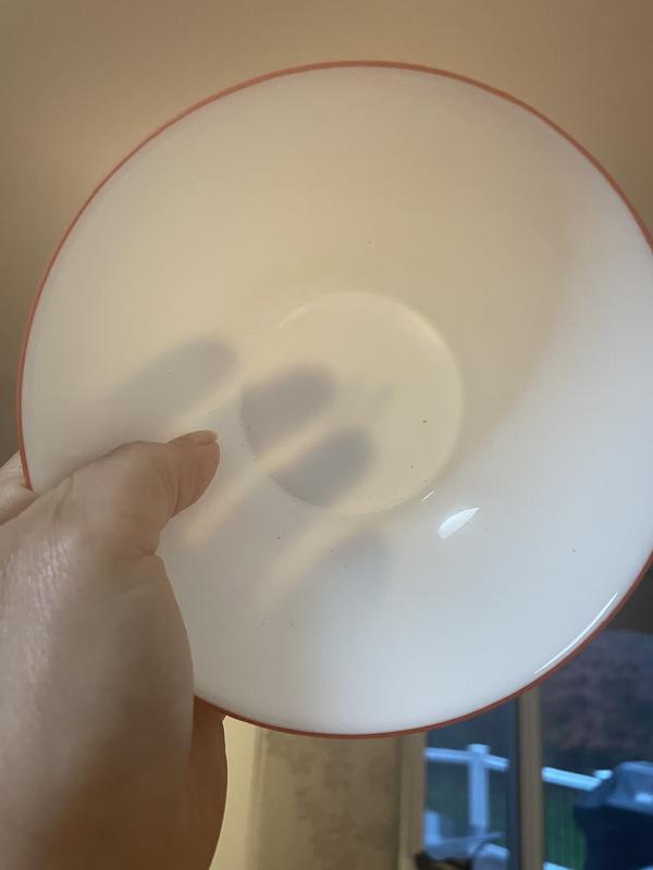 The bowls are nice. A little too thin, if I put them against the light, I can see the shadow of my fingers. I used them for snacks, but I won't use them for cereal; they are too small. The red border gives them a nice touch, but at the same time, when I use them with completely white china, they just mismatch with the rest.