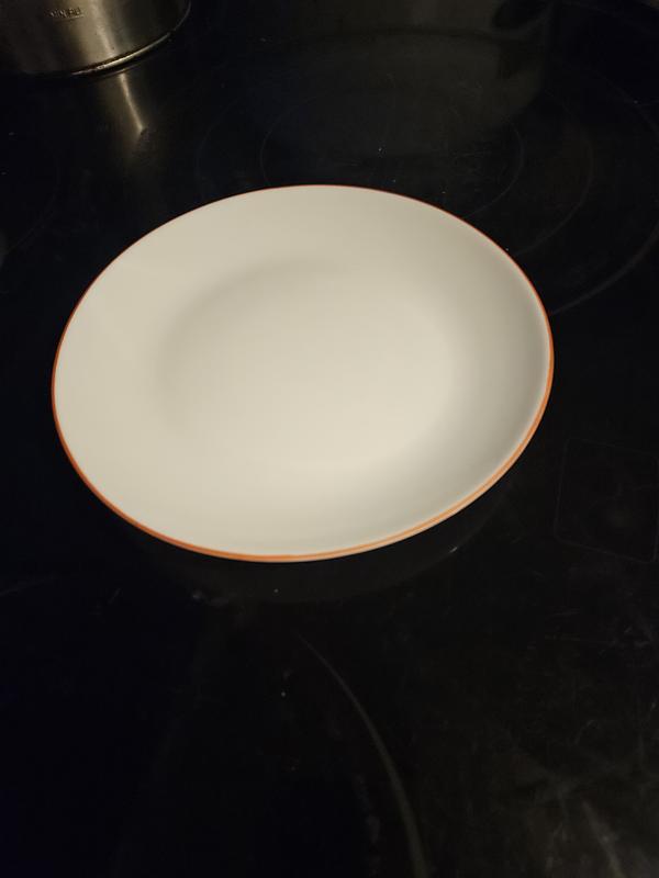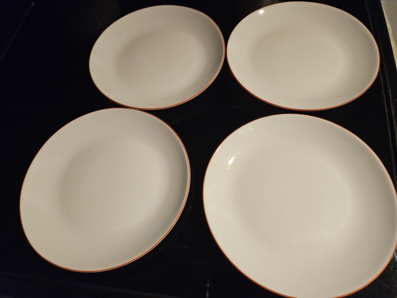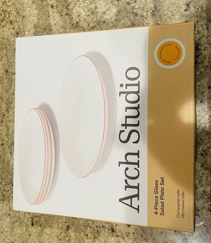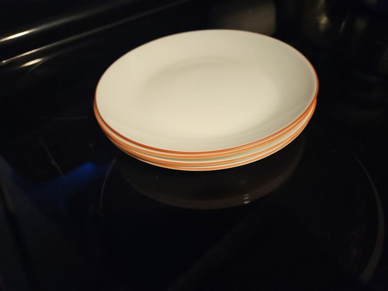 I love these plates! They’re sleek and minimalist with just the right touch of color around the edge to make them feel elevated without being flashy. The size is spot-on — ideal for salads, but also great for sides or small entrées when you don’t need a full dinner plate. The high-tempered glass feels durable and substantial, and the fact that they’re both microwave and dishwasher safe makes them as practical as they are stylish. Overall, an excellent value for a set that looks beautiful on the table and stands up to everyday use.