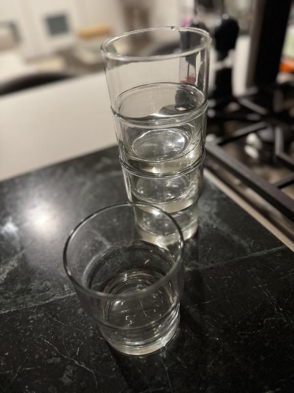 When these glasses arrived I didn’t have great expectations based on the pictures. However, once I pulled them out of the box, I observed the most unique and interesting intriguing design. The shape presents as if there were different size glasses melted on top of one another. They are extremely comfortable to hold in your hand. I love that it came with a short version and tall version. After receiving these, I felt it was necessary to get rid of the other glasses in the kitchen, as these made my existing glasses appear outdated. Highly recommended!