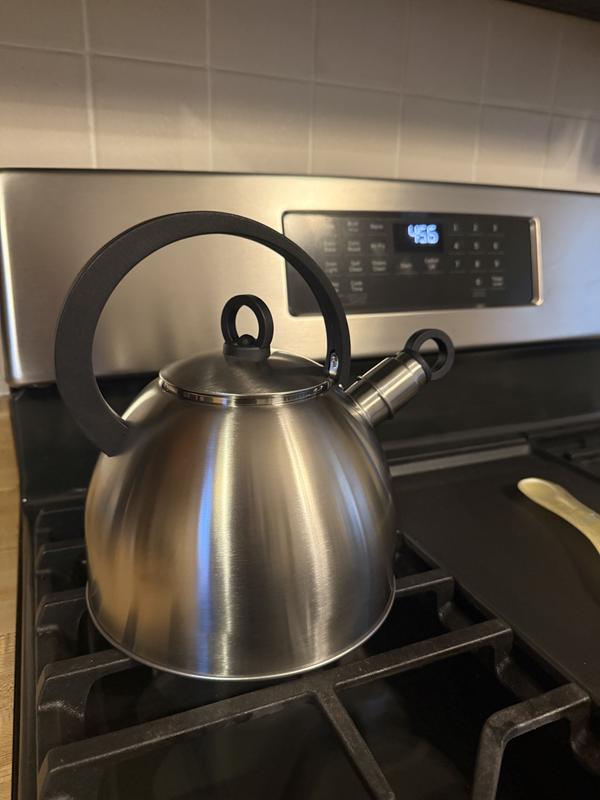 Such a cute tea kettle! This kettle is so lightweight and the perfect size. It’s really stylish too. Water boils super quickly and the whistle is the perfect pitch. I highly recommend getting the one!