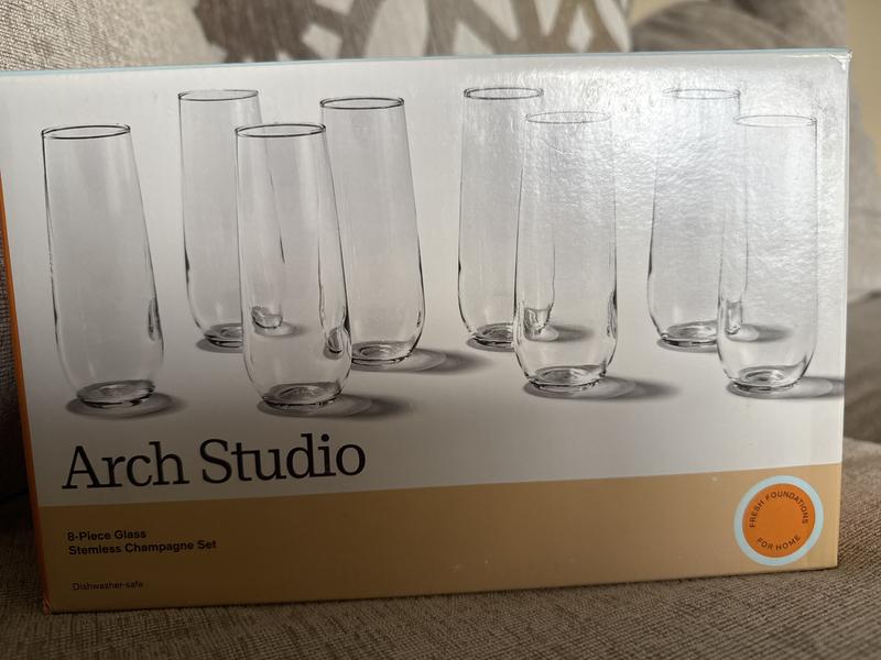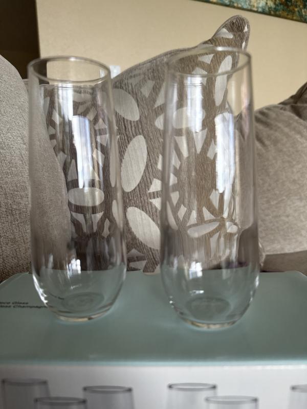 8-piece glass stemless champagne set is a great addition to my kitchen for special occasions. Glasses are sturdy and thick glass - adding elegance to a nicely set table. Looking forward to adding them to my Christmas morning brunch.