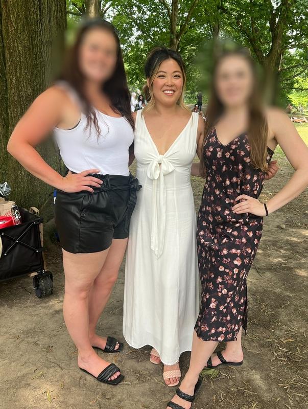 I struck out finding a dress for my bridal shower at both Lulus and Revolve, then thankfully remembered my last purchase from Petal and Pup. . . I overnighted 2 different sizes of 2 different styles from P&P and loved BOTH options. I ended up choosing this style with the front tie, and received so many compliments. It was great to have the front be adjustable so you can retie as tight as you need to stay contained! It is also a thick enough linen material that my underwear didn't show through, which rarely happens with white dresses. Overall, the large was the perfect size (length as well) for me and I will absolutely wear for numerous reasons again!