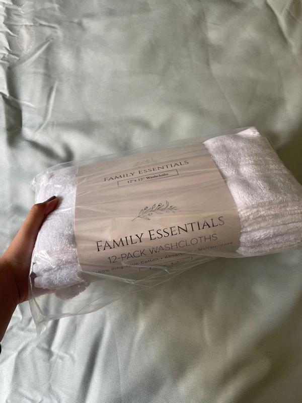 Family Essentials Washcloths (Pack of 12), 12x12, Cotton