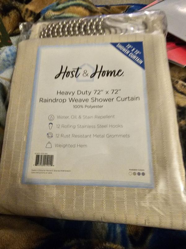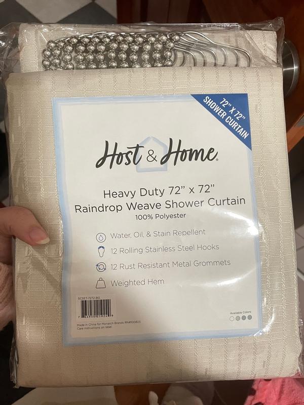 Host & Home Raindrop Stripe Textured Shower Curtain Set with 12 Metal Rolling Rings, Weighted Hem, Rust-Proof Grommets, Fine 100% Polyester Yarn, 72x72, Three Proof Treatment Repels Water, Stains, & Oil