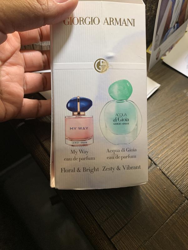 - Acqua di Gioia Eau de Parfum, 0.17 oz.; My Way Eau de Parfum, 0.23 oz.