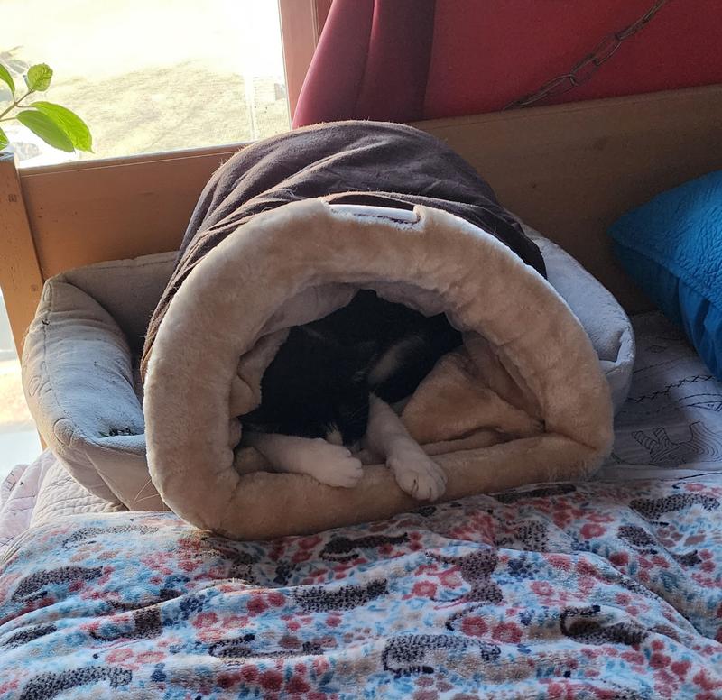 Your feline friend can tuck inside Armarkat Model C15HKF/MH cat bed. This beige and mocha bed combines buttery faux suede and resilient faux fur. It is filled with extra-thick, 100-percent polyfill for your petcomfort. Machine wash on gentle cycle, tumble dry low, the pet bed is a durable and easy maintenance. Six months manufacturer warranty against defects. Dimensions: Exterior: 20"(L) x 14"x 10"(H) Interior: 18"(L) x 12"x 10"(H)