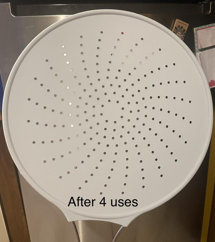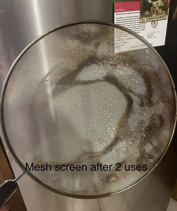 I love this splatter screen the material held up really good to high heat and super easy to clean. I prefer this over the mesh metal splatter screens after one use they discolor and while washing the screen separates from the the sides, I have gone though multiple due to this. I was really happy to find one in this material. If you still use the mesh screens I guarantee you will love using this kind over those.
