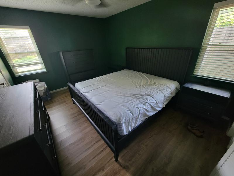 This bed is gorgeous! Very Sturdy and feels like a quality piece. The wood looks like a matte black finish in person. Delivery takes several weeks but it was worth the wait.