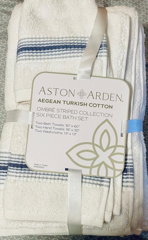 Luxury White/Ombre Stripe 6-Piece Bath Towel Set, 600 GSM, Soft 100% Turkish Cotton Bathroom Towels, Made in Turkey, 2 Bath Towels, 2 Hand Towels, 2 Washcloths