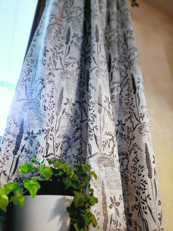 These curtains are great. They fit great over my curtain rod, and can be put on 2 different t ways. Through loops, or one long hole. They block the sun great! My home is full of plants, so this plant design fits perfectly.