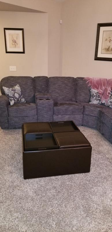 Solid and nice looking ottoman. When the ottoman that matches my couch set was discontinued, I bought this one. It still has the suede leather look, nice storage area, and the top four pieces can be turned over and used as a hard tray area, one up to 4 pieces. It's new but seems to be good quality, and all you have to do is put the feet on the corners and its assembled.