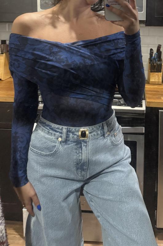 I loved the color of this bodysuit! However nowhere in the description did it state it was mesh and sheer! You can see a black bra or with no bra nothing is left to the imagination! The wrap part is double layer but it isn’t long enough to fully cover bust if you are busty. Sad to have to return it!