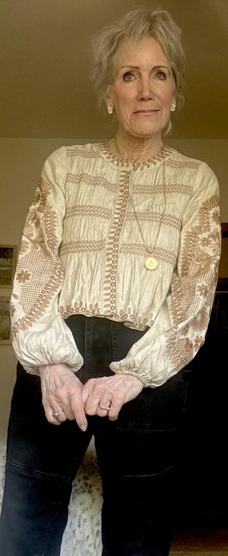 I constantly wear this jacket ! I like that you can wear it as a top or layer it as a jacket. The embroidery detail all over really makes you stand out! I wish I had in more colors !