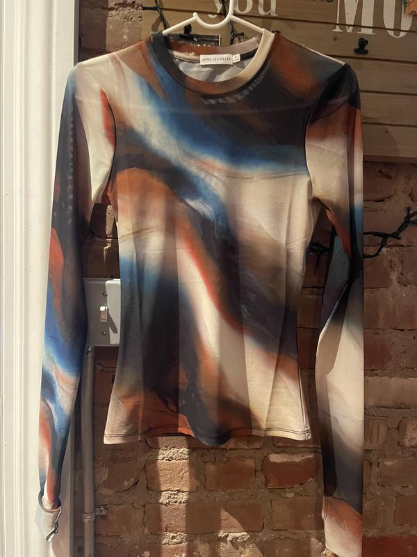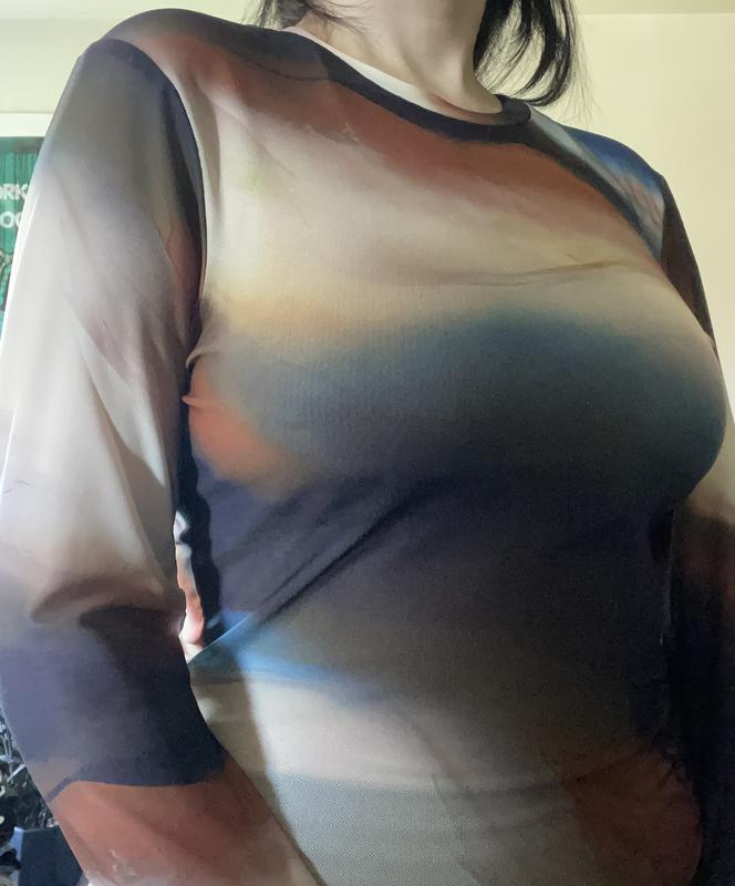 Love this top. Fits great like the long sleeves and you can't see through it. Fun top to wear.