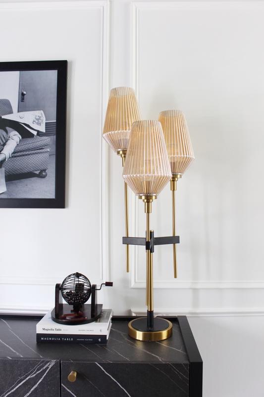 I am obsessed with this lamp. It is SO tall and the amber glass shades reflect the most gorgeous glow on the walls in the evening. It was really easy to assemble and the quality is great. Love it so much!