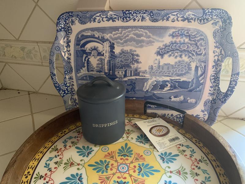 Great item for all the drippings from the pans. Came quickly and the blue color matches my kitchen.