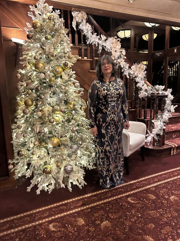 This dress was sooooo pretty & kept my mom warm for her sister’s December wedding. It fit her like a glove, & was soooo sparkly. It looked great on her & was on sale