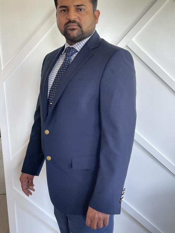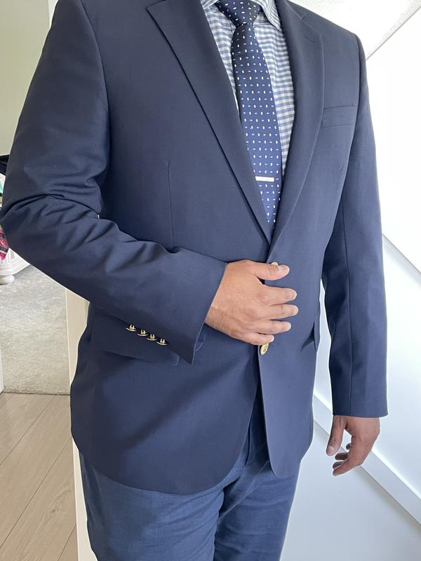 Men's Classic-Fit Navy Stretch Wool Blend Blazer