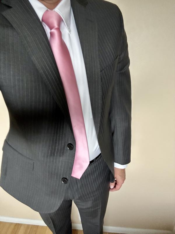 Nice, lined suit. Only issue was that I could not find the necktie that the model is wearing with the suit. Even Macys couldn't identify the necktie.