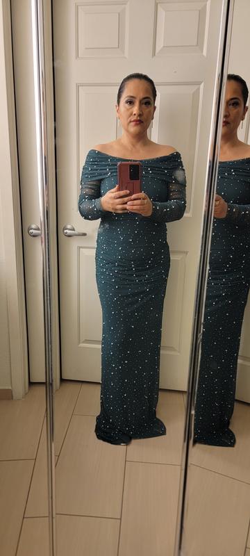 The dress is stunning. However, something is wrong with the left arm. It wasn't made the same as the right. The left arm feels very tight. So I reordered the dress in a bigger size. And I'm going to see how that feels before I return the original. I really love this dress so I hope it works out.