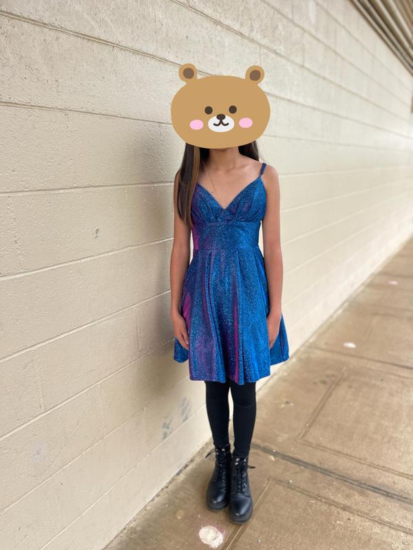 This dress is the perfect cute for a 14 year old. Bright and shiny as well and it has pockets!