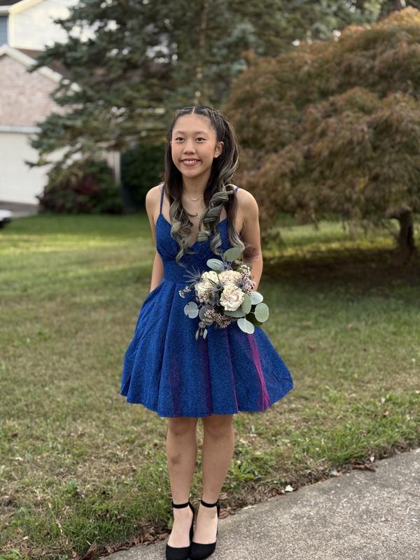 My daughter wore this dress to homecoming. Fit perfectly and looked gorgeous! Loved the sparkles and color