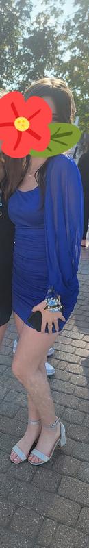 This dress was gorgeous on my daughter for her dance. It looked tiny, but once she got it on it fit perfectly and she got tons of compliments on it. It does shed glitter.