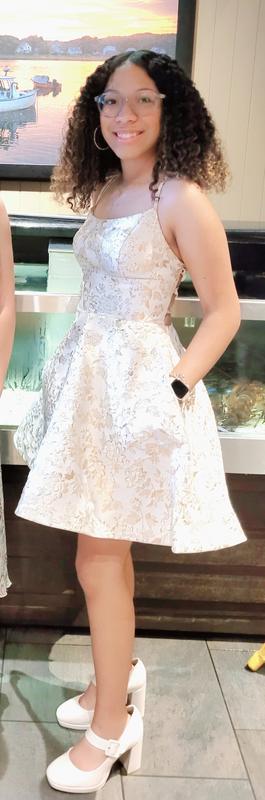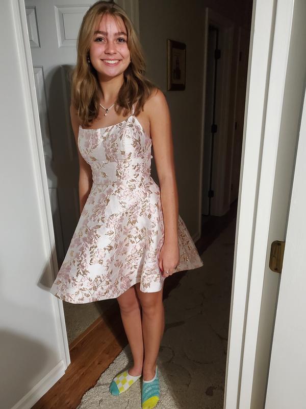 Worst designed dress EVER. The straps are a disaster. Besides feeling like a billion needles are scratching your back, thanks to the metallic foil thread; the thick tapestry-like material prevents the ability to adjust the strap length. I have no idea how there are any positive reviews on this dress. It is gorgeous. But completely nonfunctional.